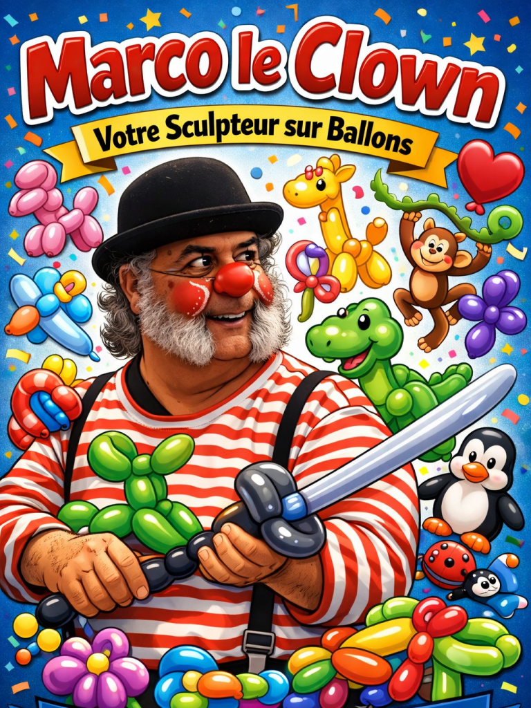 Le monde magic de Marco propose des animations clown, des sculptures en ballons, des jeux anciens et des shows de bulles de savon pour enfants. Chaque prestation crée une ambiance chaleureuse qui transporte petits et grands dans un univers joyeux et convivial.